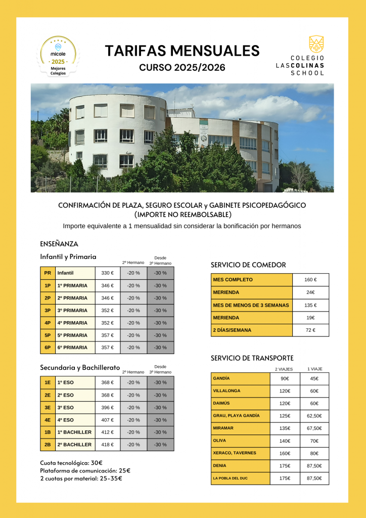 Consulta las tarifas del próximo curso escolar 2025/2026: